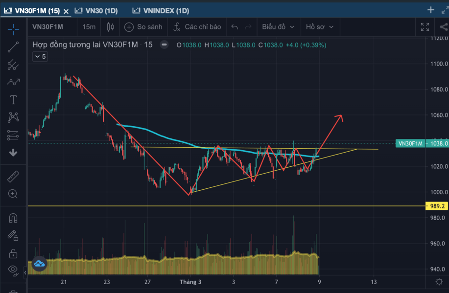 Vâng, giai đoạn TT đang chuyển giao sang Tích luỹ, Vĩ mô trong nước - ngoài nước vẫn còn khá nhiều tin xấu nên em giao dịch Phái Sinh để có thể tối ưu được 2 chiêu và chủ động LN ngay ạ. Hàng cơ sở thì vẫn có cơ hội để ăn ở sóng Thép, ĐTC, sóng hồi BDS ơ nghị quyết 33, hay nhưng deal ở các Bank có base tốt…
