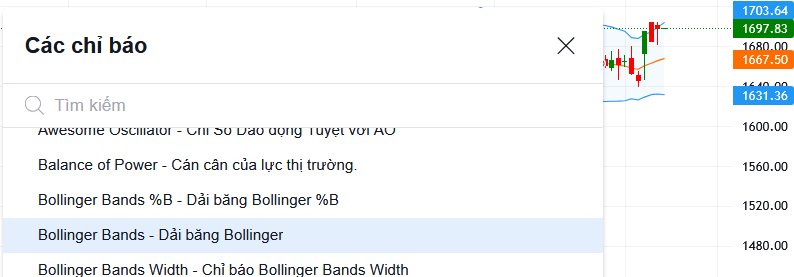 Mới mở ptkt; cho vẽ Bband … đã thấy max mới 1703,64 rùi!