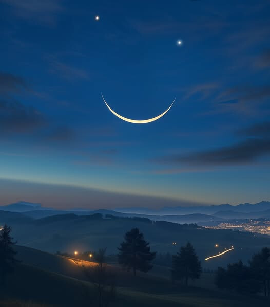 Một nụ cười thiên địa phía trên chân trời - Mặt trăng lưỡi liềm, được gia nhập bởi sao Kim và sao Mộc, tạo thành một cảnh tượng hiếm có và ấm áp được biết đến với cái tên “Bầu trời mỉm cười.”