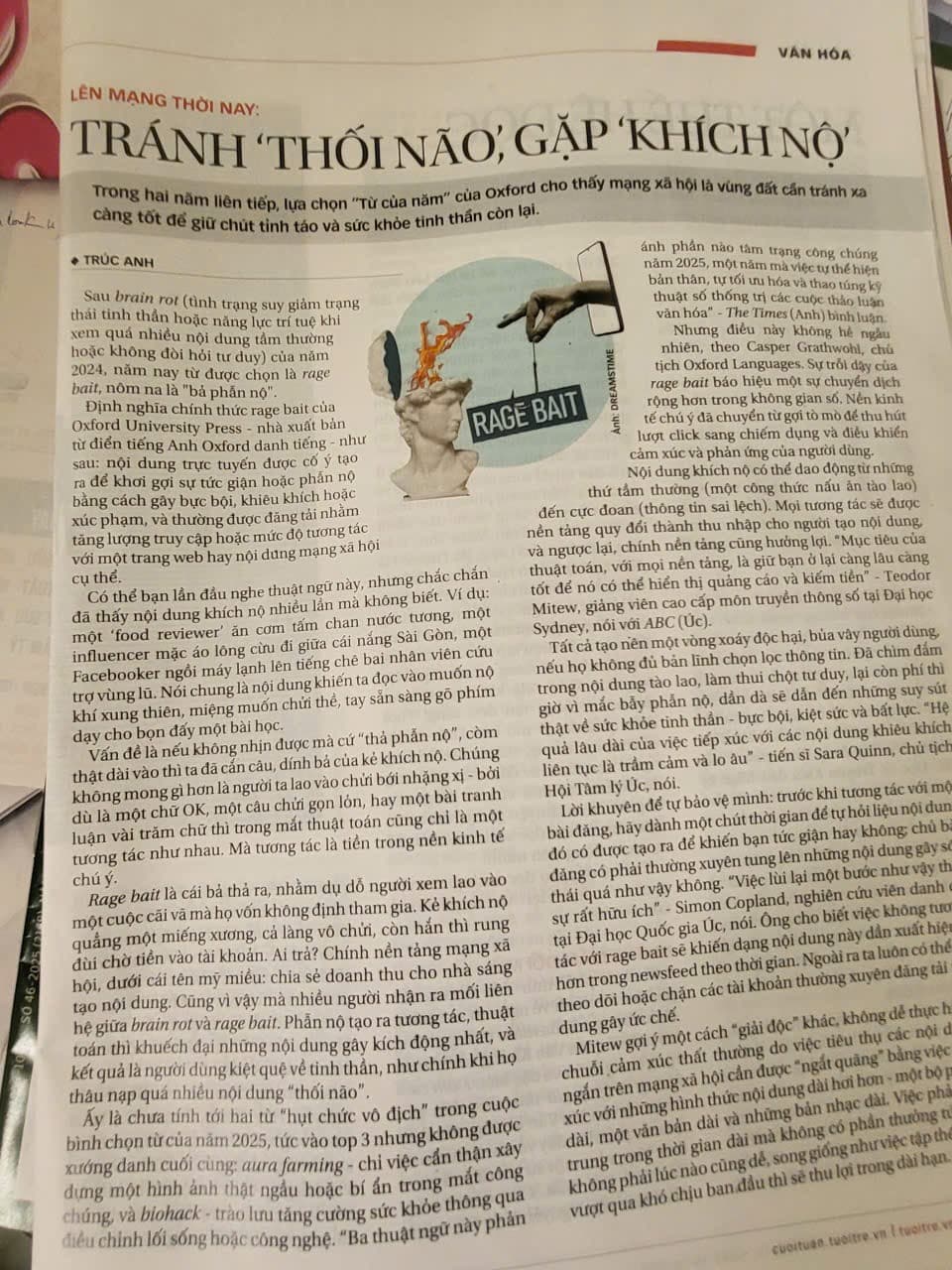 - Chữ của năm 2025 : mồi nhữ thịnh nộ ( RAGE BAIT). MXH sau 2024 có chữ “Thối não” (Brain rot)=> tác động mạnh đến sức khỏe tâm/tinh thần con người.