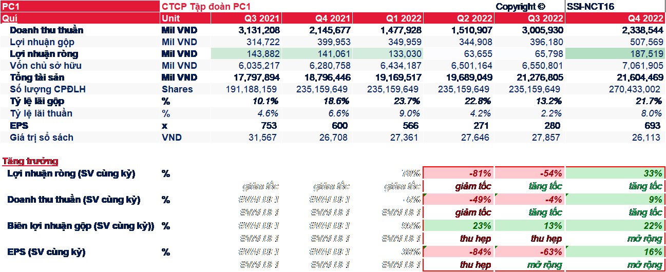 Quý 4/2022, doanh thu thuần và lãi ròng lần lượt đạt 2,338 tỷ đồng và 187 tỷ đồng, tăng trưởng lần lượt 8.2% và 33% YoY: