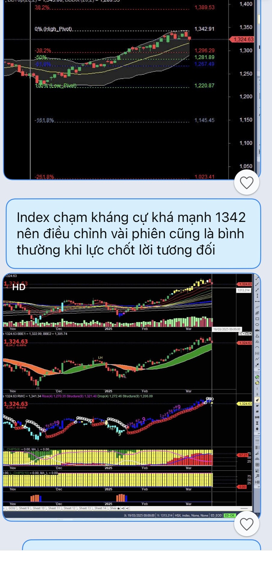 Index tăng giảm ngắn hạn mình chịu hôm trước cũng nói rồi chạm vùng 1342 là vùng khá cứng và cá mập ăn cũng dc 1 khúc rồi nên chốt lãi điều chỉnh hay abc cũng là bình thường