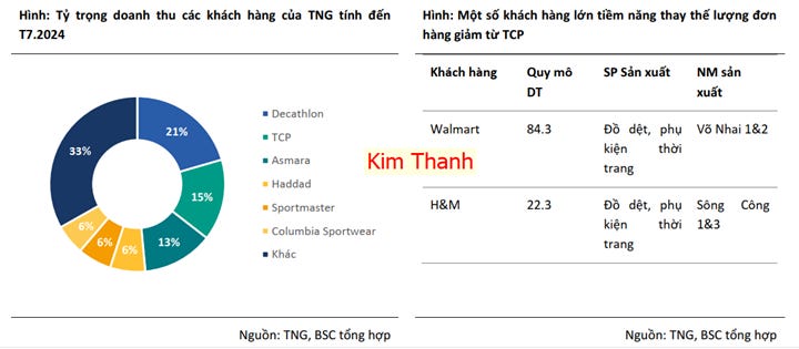 Đồng thời, TNG cũng có thể hưởng lợi từ việc dịch chuyển đơn hàng từ Bangladesh. Cụ thể, các khách hàng lớn của TNG như H&M và Decathlon hiện có tỷ trọng đơn hàng lớn tại Bangladesh và một phần trong số đó có thể được chuyển sang Việt Nam nếu tình hình chính trị tại Bangladesh tiếp tục phức tạp.