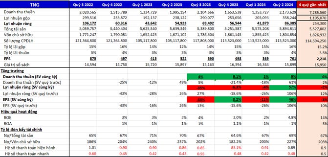 Trong Quý 3 vừa qua, TNG đạt doanh thu thuần 2.538 tỷ (+12% YoY) và Lợi nhuận sau thuế 11 tỷ (+60% YoY) – mức lợi nhuận cao nhất trong gần 2 năm trở lại đây.