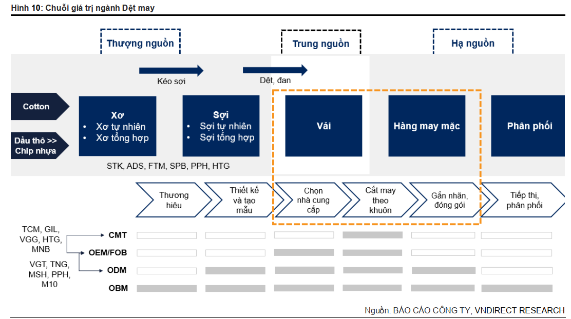 May mặc là ngành có lịch sử phát triển lâu đời tại Việt Nam, các doanh nghiệp trong ngành chủ yếu là gia công các sản phẩm theo hợp đồng với nhãn hàng quốc tới. Theo đó, gia công nằm ở cuối của chuỗi giá trị ngành Dệt May (sau mảng Sợi, Vải) và có giá trị gia tăng thấp do chỉ bao gồm các bước đơn giản, không tham gia sâu vào các công đoạn sáng tạo có giá trị tăng cao như thiết kế, xây dựng thương hiệu.