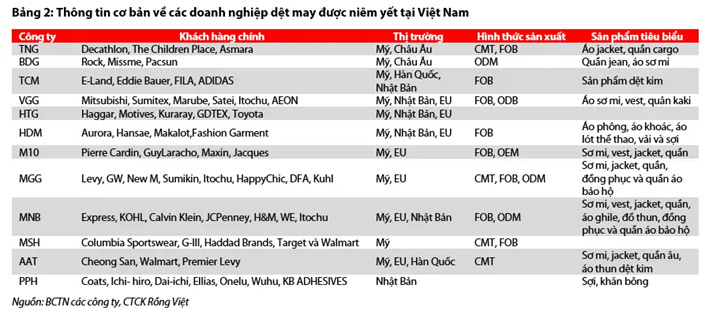 Vải may chiếm 70% chi phí nguyên vật liệu sản xuất và phần lớn tới từ nhập khẩu , về năng lực dệt, nhuộm nội địa còn kém phát triển do hạn chế về chi phí vốn đầu tư cao và cạnh tranh từ các nhà cung cấp lớn trong khu vực như Trung Quốc, Hàn Quốc.