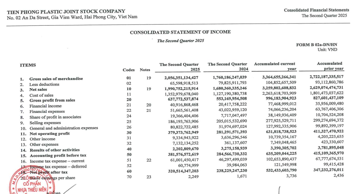 chính thức vượt đỉnh lịch sử mọi thời đại của chính doanh nghiệp. Mình k biết số Q2 ra sao, vì năm ngoái Q2 của Nhựa tiền phong là số to nhất lịch sử. Nhưng với giá đầu vào thấp phải nói là kỷ lục thì nếu c/ty qua được thì c/ty sẽ là 1 trong các cp mà kinh doanh vượt đỉnh lịch sử kinh doanh mọi thời đại của chính họ
