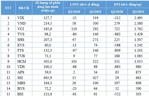 Thanh khoản thị trường tiếp tục được duy trì ở mức cao trong quý 1/2021 đã giúp cho các CTCK tiếp tục gặt hái được thành công trong hoạt động kinh doanh. Ngoài những tên tuổi quen thuộc, bảng xếp hạng EPS các CTCK quý 1/2021 đã có sự thay đổi.