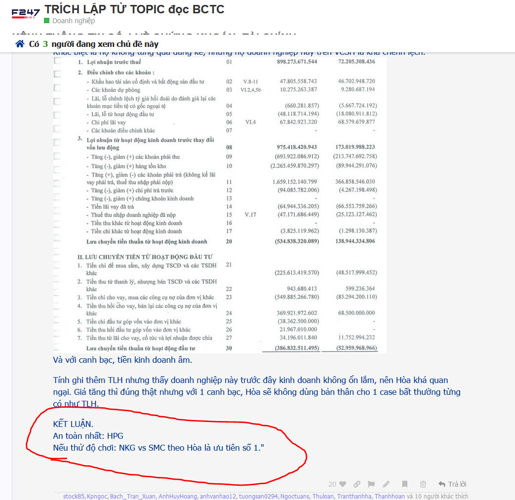 Về cơ bản thì bảng dòng tiền sẽ có biến động ở cả NKG vs HSG.