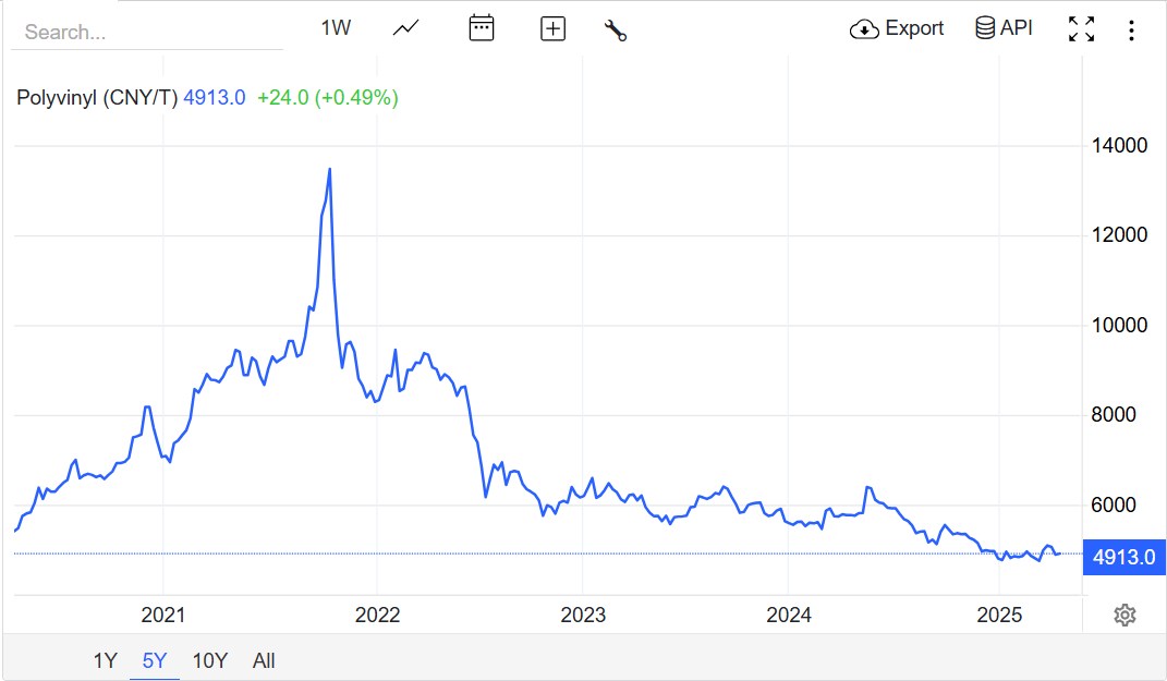 (2) Nhu cầu PVC sụt giảm tại Trung Quốc và Ấn Độ, chưa có dấu hiệu cải thiện.