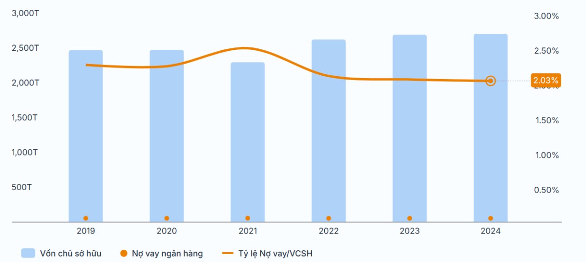 - Tài chính vững mạnh: tiền mặt lớn, nợ vay thấp nhất ngành