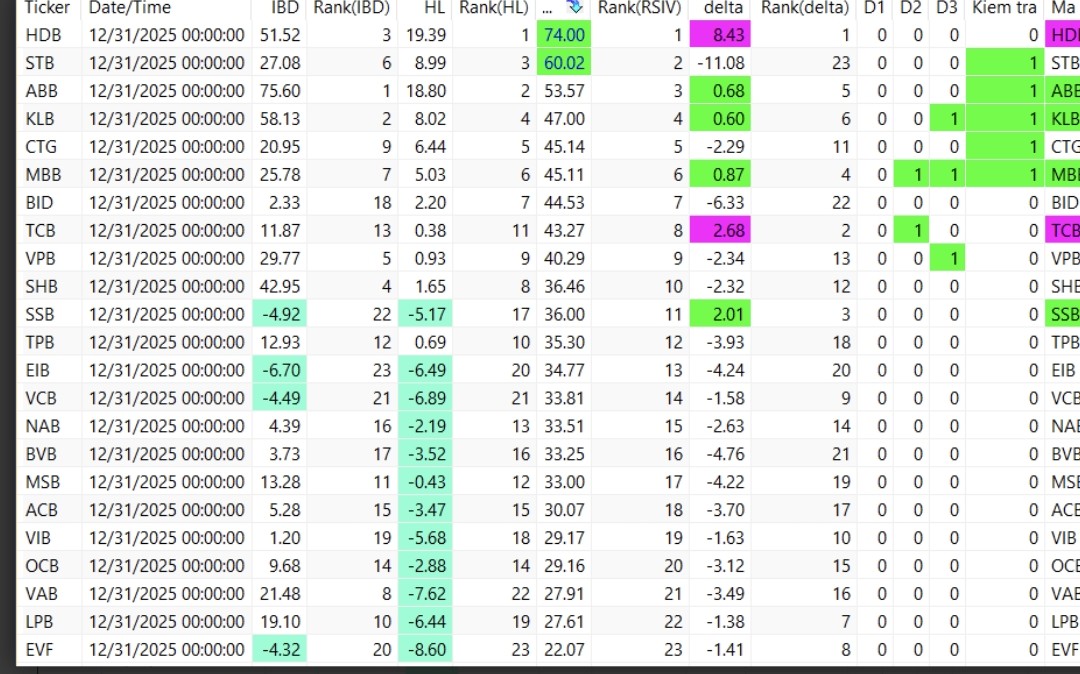 Ví dụ nhìn vào đây, mình có thể biết nhóm ngân hàng cổ nào đang khoẻ, đây cũng là nhóm đóng góp vào sự tăng giá của Vn-Index trong đầu năm mới cùng với nhóm cũ và nhóm đang nổi lên là dầu khí, năng lượng.