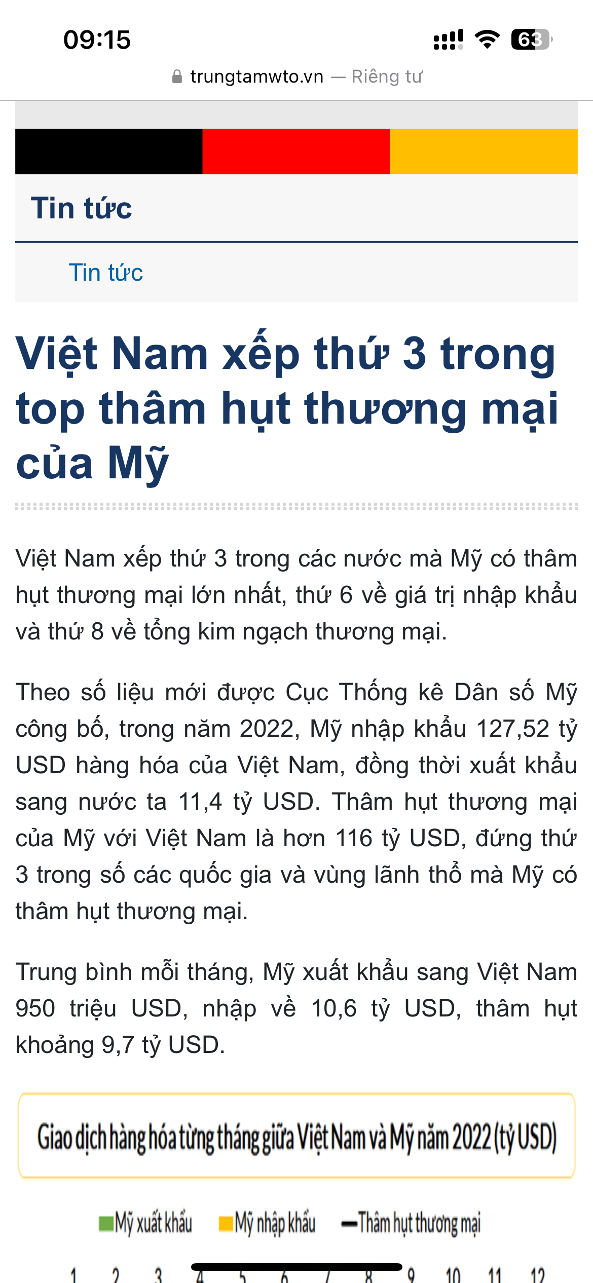 Mỹ là nước xk chiếm tỷ trọng cao nhất của VN nhưng đồng thời VN cũng thuộc top thâm hụt thương mại đối với Mỹ top 3
