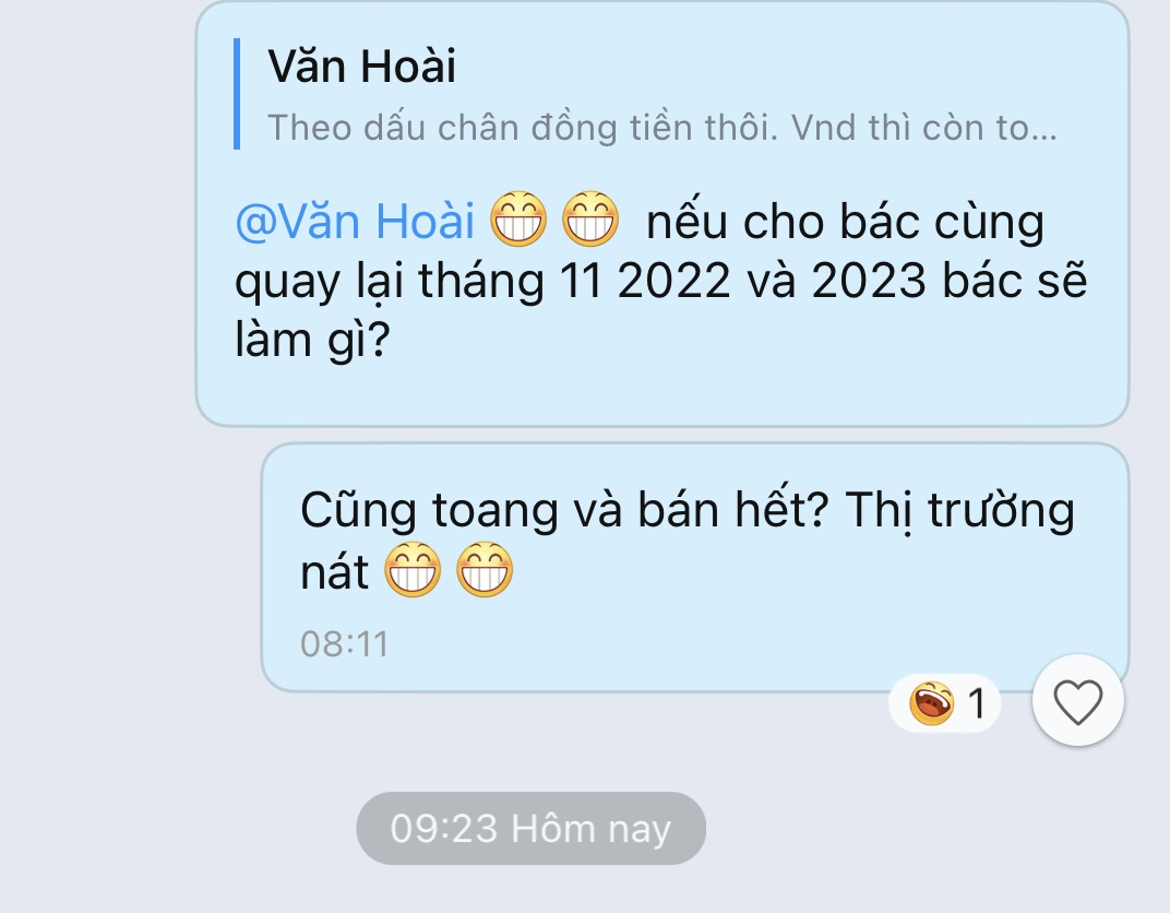 Dạo vòng ai cũng bảo về 1180 1150 thậm chí về 1000 tiền vào biit coii hết rồi đủ thứ mà mình hỏi chưa có câu trả lời, tháng 11 đó