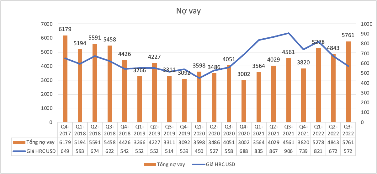 Ở chiều ngược lại, những tín hiệu tại đáy chu kỳ của NKG sẽ đến từ giá HRC giảm mạnh ở thời gian trước đó và hướng về các mốc hỗ trợ mạnh, cũng như hàng tồn kho bị cắt giảm liên tục (ngày tồn kho <60 ngày) cùng nợ vay cắt giảm để giảm thiểu chi phí tài chính. Khi ấy NKG mới có triển vọng tạo đáy.
