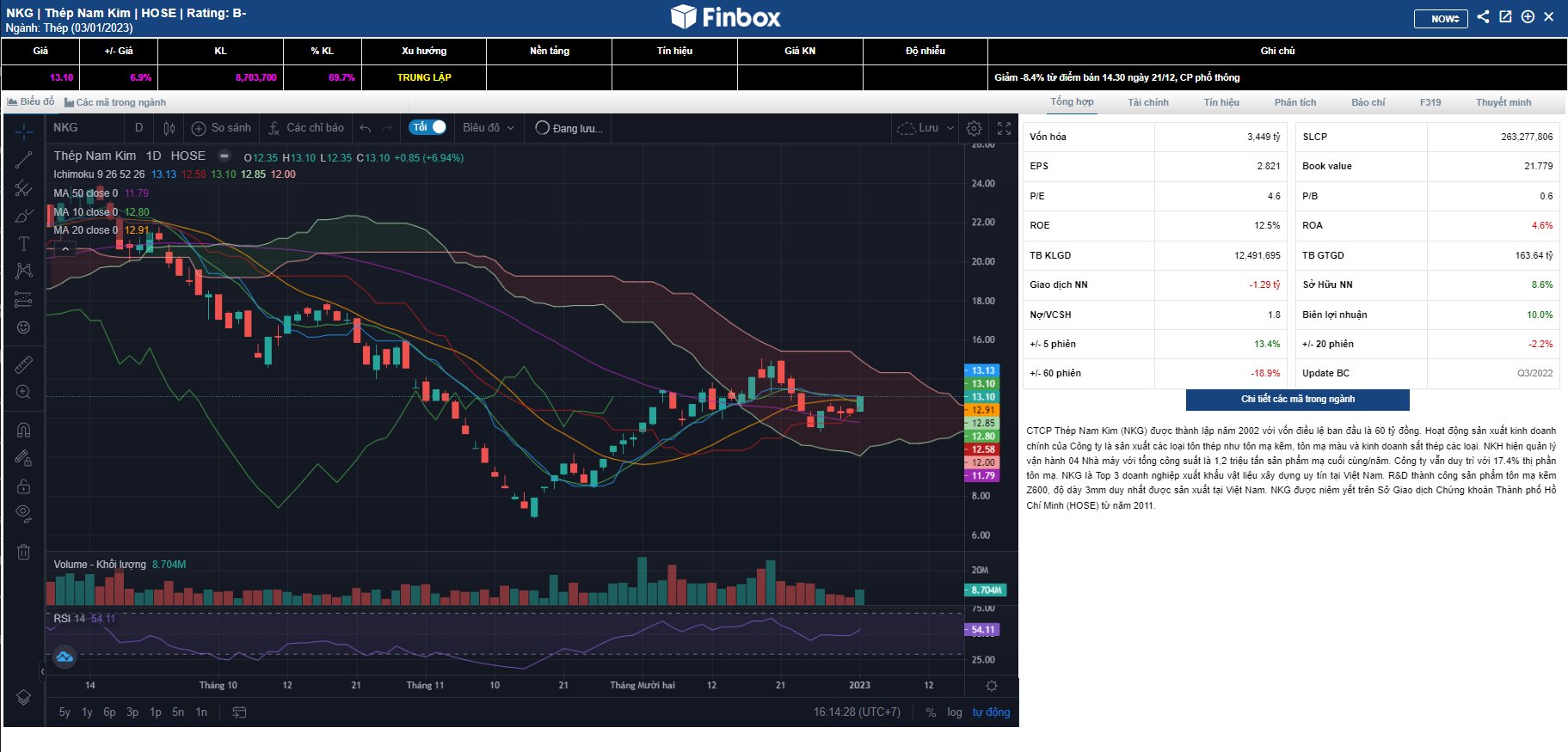 - Vậy tại thời điểm hiện tại cổ phiếu đã tạo đáy chưa? Theo quan điểm của em thì NKG vẫn chưa tạo đáy và BLNG có lẽ sẽ còn suy giảm. Bằng chứng là Q3/2022, lượng nợ vay ở mức rất lớn so với những quý trước đó là 5,761 tỷ, chủ yếu là nợ ngắn hạn với lượng hàng tồn kho rơi vào khoảng 9,127 tỷ. Trong môi trường lãi suất đang gia tăng như hiện tại, gặp phải áp lực lãi vay lớn thì NKG chắc chắn sẽ phải thanh lý lượng hàng tồn kho của mình và BLNG sẽ còn suy giảm.