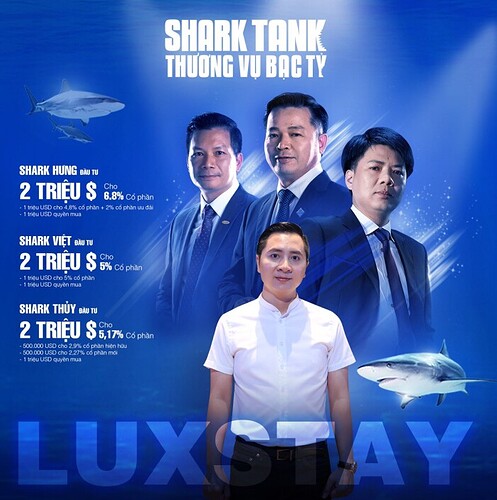 Luxstay: 3 triệu USD + 3 triệu USD quyền mua (chung với Shark Việt và Shark Hưng).