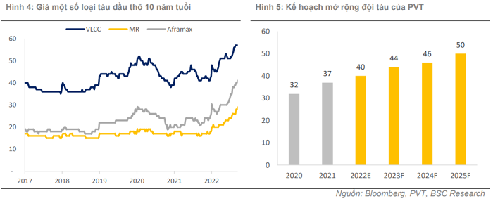 Năm 2023, các nhà phân tích dự báo PVTrans sẽ đầu tư thêm khoảng 4 tàu mới, trong đó 1 tàu xăng dầu thành phẩm MR, 1 tàu chở khí hóa lỏng loại VLGC (Very Large Gas Carrier), 1 tàu chở hàng rời và xà lan để phục vụ chở than cho dự án nhiệt điện sông Hậu