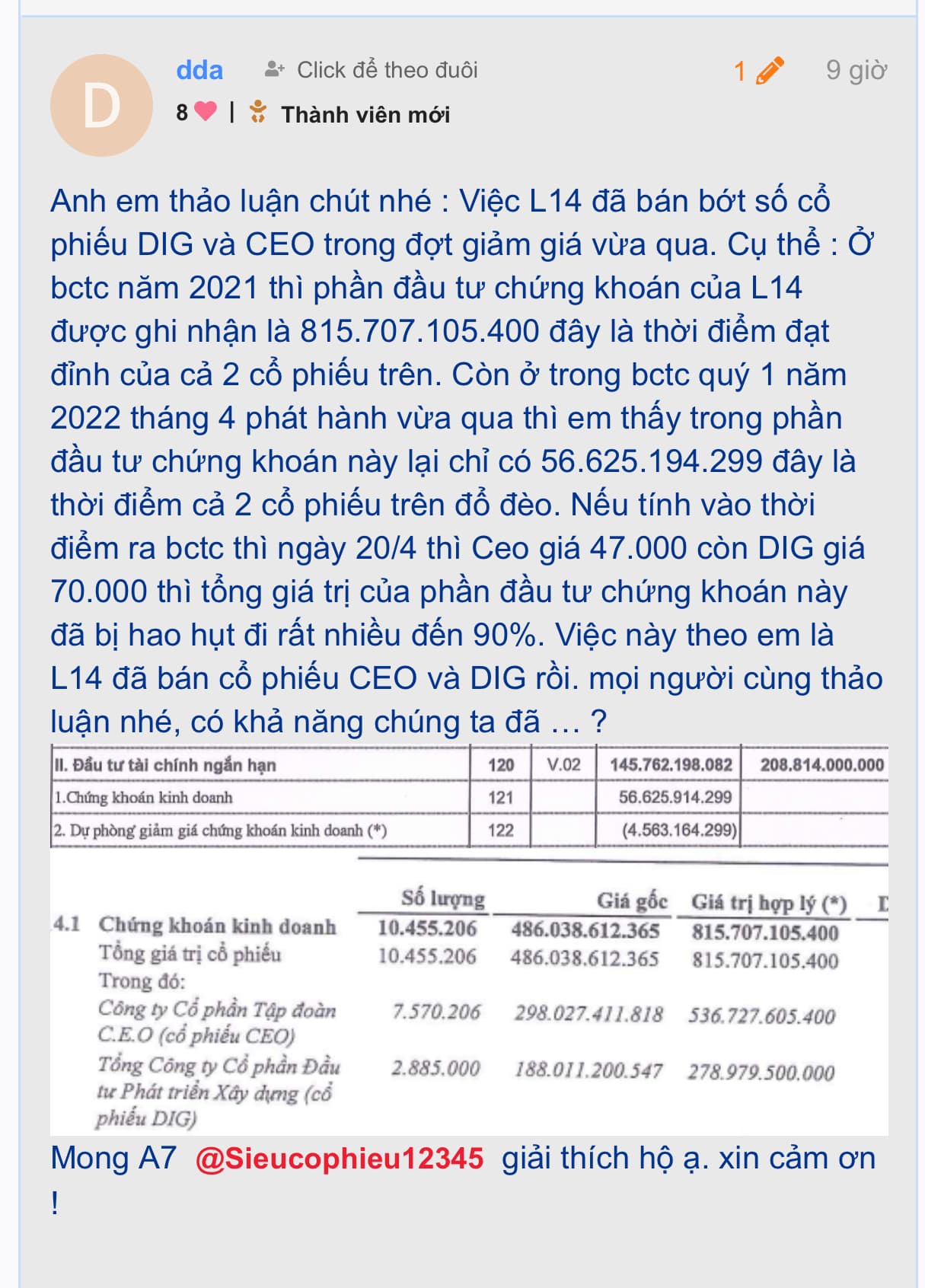 Tôi là nhà đầu tư. Còn con ceo dig thì còn nhiều khuất tất lắm, bán hàng hqi giá của con Ceo, dig có hay ko??? Chuyển giá ấy mà, có thông đồng với quan tham nào ko???.. có lái giá cp ko??? Hehe… thời gian sẽ trả lời.