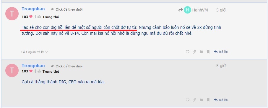 Ừ bố ngu vẫn ôm DIG mày khôn thì mày cầm tiền mà gửi ngân hàng nhé.