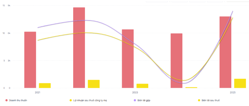 Như vậy, lũy kế cả năm 2025 NT2 đã ghi nhận 7.804 tỷ doanh thu và 999 tỷ lợi nhuận – lần lượt hoàn thành 95% và 359% kế hoạch năm đề ra tại ĐHCĐ. Con số lợi nhuận ấn tượng đạt được nhờ biên lợi nhuận được cải thiện tích cực hơn dự kiến của ban lãnh đạo, cũng như bù doanh thu Qc cao và các khoản doanh thu bất thường chưa được phản ánh. (Hình 2)
