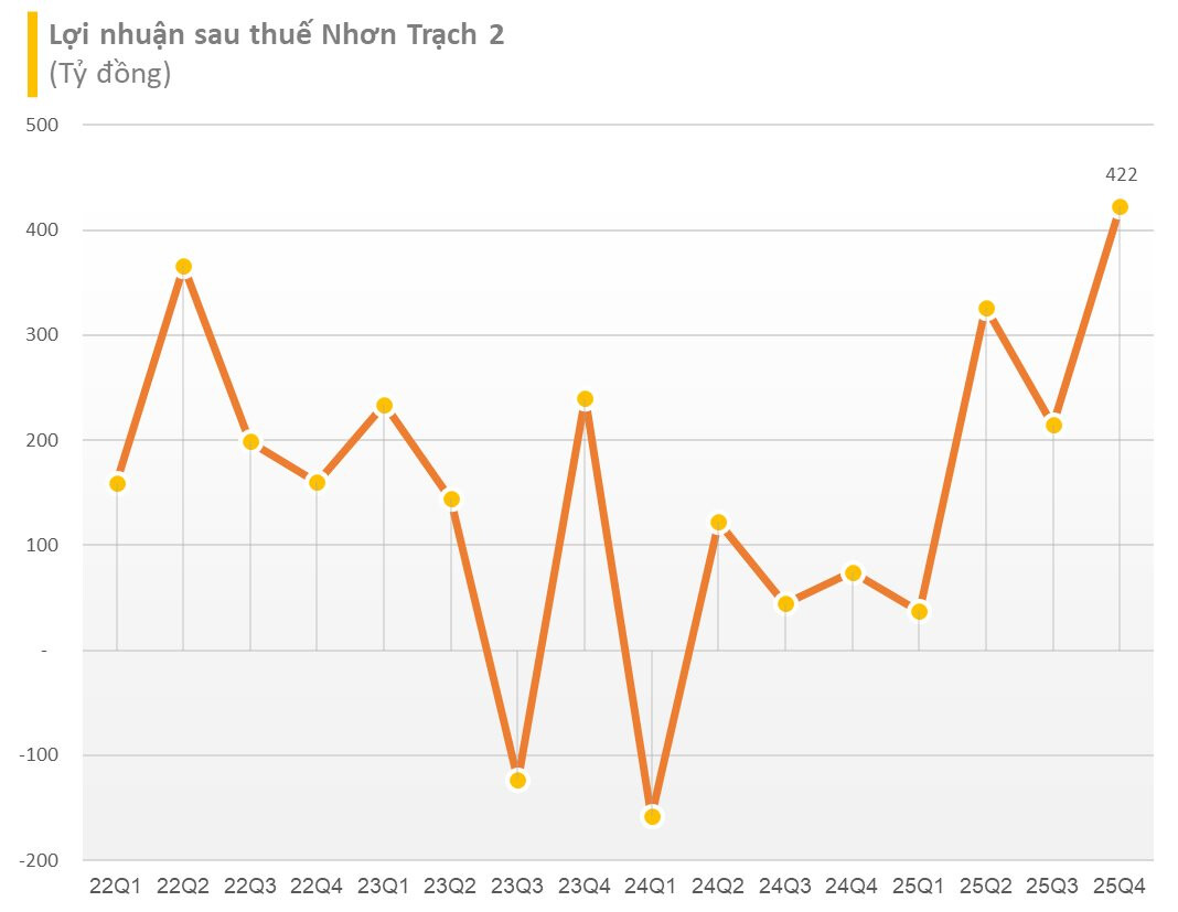 Lũy kế cả năm 2025, NT2 ghi nhận doanh thu thuần đạt 7.804 tỷ đồng, tăng 31% so với cùng kỳ. Lợi nhuận sau thuế lũy kế năm 2025 đạt gần 1.000 tỷ đồng, gấp 12 lần so với mức 82,9 tỷ đồng của năm 2024. CTCP Điện lực Dầu khí Nhơn Trạch 2 (mã chứng khoán: NT2) vừa công bố báo cáo tài chính quý 4/2025 với kết quả kinh doanh tăng trưởng ấn tượng. Trong quý 4/2025, NT2 ghi nhận doanh thu thuần đạt 2.367 tỷ đồng, tăng khoảng 33% so với mức 1.784 tỷ đồng của cùng kỳ năm 2024. Đáng chú ý, lợi nhuận sau thuế của doanh nghiệp đạt 422 tỷ đồng, tăng 466% so với con số gần 75 tỷ đồng của Quý 4/2024. Giải trình về kết quả này, NT2 cho biết nguyên nhân chủ yếu đến từ hoạt động sản xuất điện. Cụ thể, doanh thu sản xuất điện trong Quý 4 tăng 583,4 tỷ đồng, trong khi giá vốn hàng bán chỉ tăng 193,6 tỷ đồng (tương ứng 11,4%). Việc tốc độ tăng doanh thu vượt tốc độ tăng giá vốn đã giúp lợi nhuận gộp từ sản xuất điện tăng thêm 389,8 tỷ đồng, tương đương mức tăng 443,9%. Ngoài ra, lợi nhuận từ hoạt động tài chính quý 4/2025 cũng tăng 9,6 tỷ đồng so với quý 4/2024.
