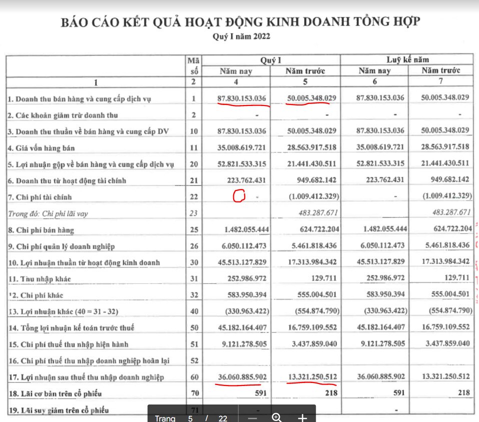 Doanh thu lợi nhuận đều tăng trưởng tốt SVCK, lợi nhuận tăng từ 13 tỷ năm ngoái lên 36 tỷ quý 1 năm nay