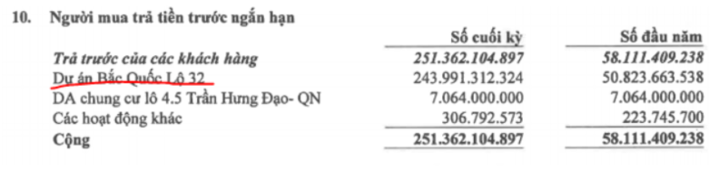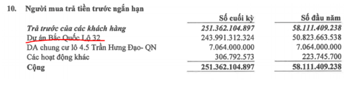 Tại quý 2-2021 công ty cũng đã ghi nhận doanh thu gần 109.5 tỷ đồng, tăng 7.9% so với cùng kỳ. Lợi nhuận sau thuế đạt 51.4 tỷ đồng, tăng 21.2% yoy. Lũy kế 6 tháng đầu năm doanh thu công ty đạt gần 160 tỷ, lợi nhuận gộp đạt 92 tỷ đồng, đây là con số thấp so với kế hoạch công ty đề ra cho năm 2021. Tuy nhiên với các doanh nghiệp BĐS thì 6 tháng đầu năm không phải là các tháng cao điểm để bàn giao và hạch toán, nên để đánh giá các doanh nghiệp BĐS thì ít nhất phải nhìn theo từng năm thay vì từng quý. Và chúng tôi cho rằng trong 6 tháng cuối năm công ty sẽ hoàn thành được kế hoạch đề ra. Trên báo cáo tài chính quý 2 khoản mục khách hàng trả trước cũng tăng lên tốt sau 2 quý đã phần nào cho thấy tiềm năng các quý tới. Đặc biệt là dự án bắc quốc lộ 32 khoản người mua trả trước ngắn hạn tăng mạnh từ 50 tỷ đồng đầu năm lên 244 tỷ tại quý 2 như hình 6 dưới: