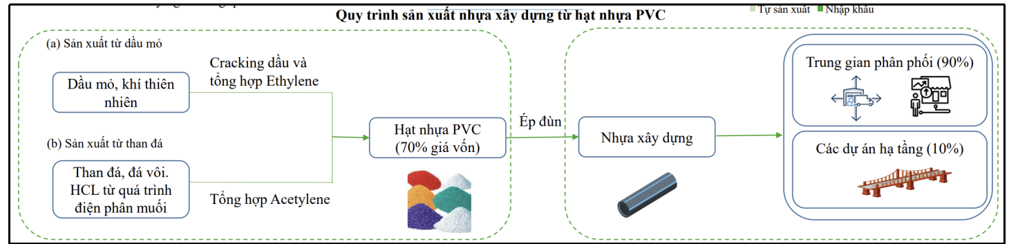- Việt Nam hiện tại chưa làm chủ được chuỗi giá trị sản xuất nhựa xây dựng khi phải phụ thuộc nhiều vào nguyên liệu đầu vào là hạt nhựa PVC phải nhập khẩu.