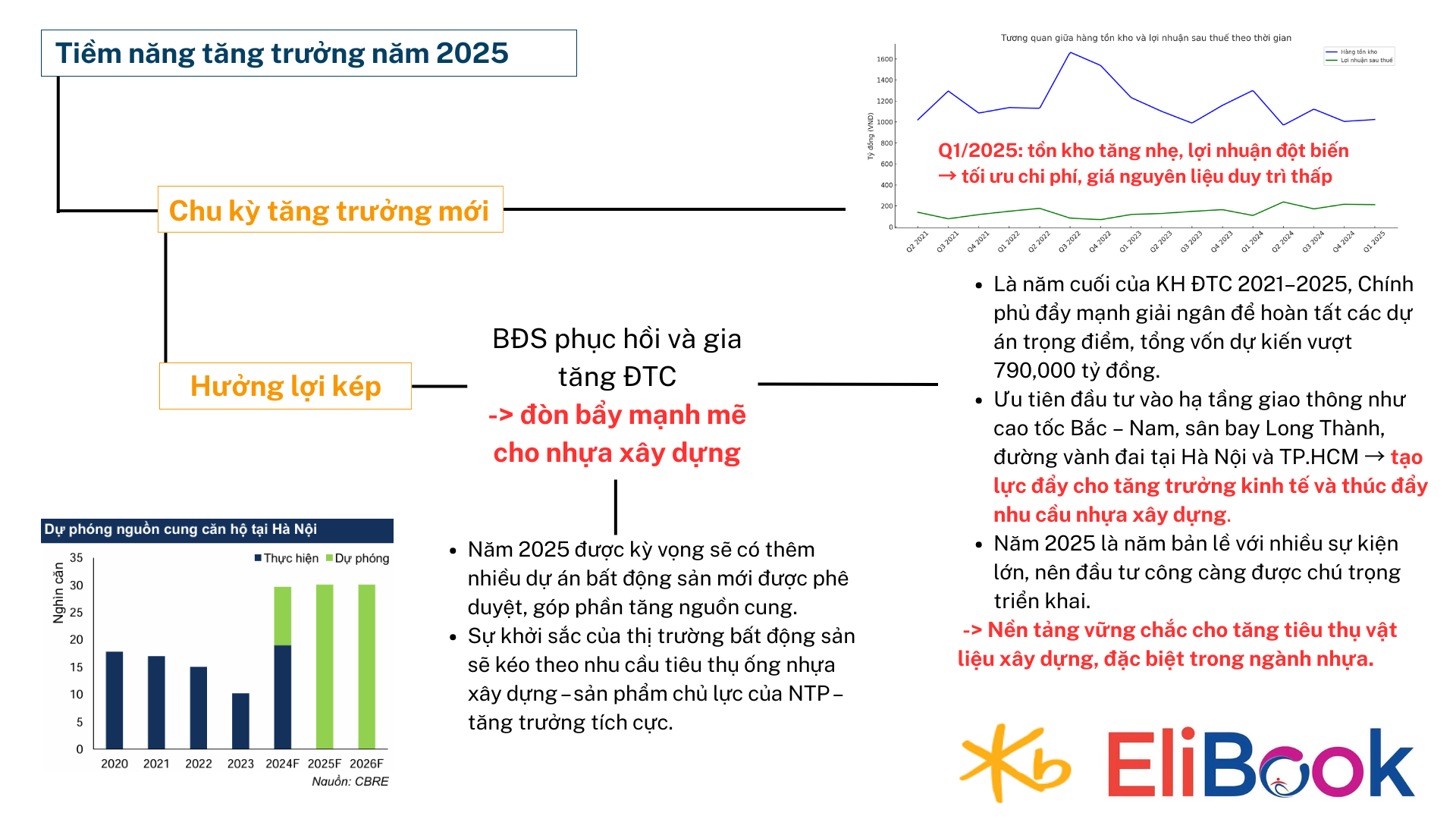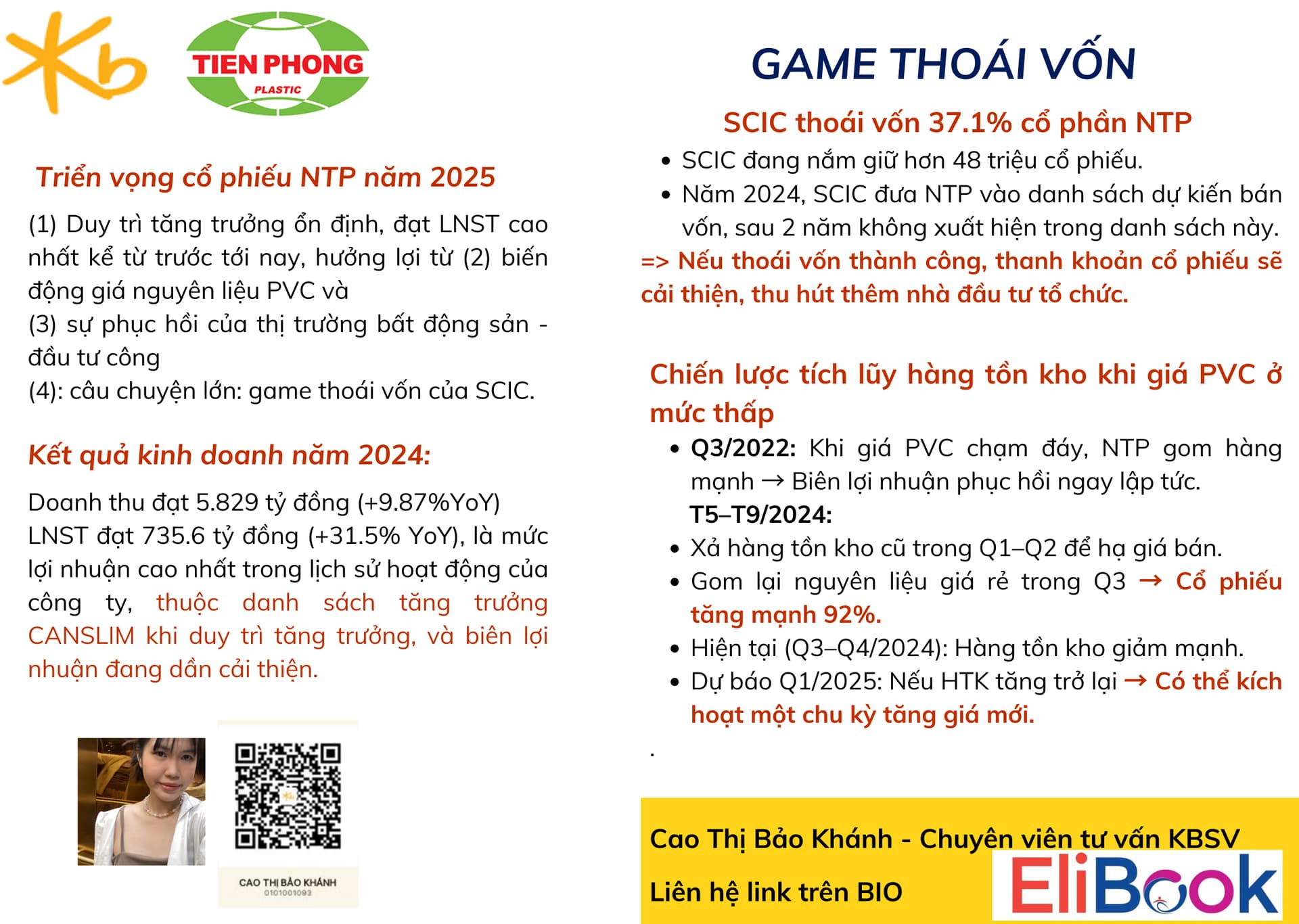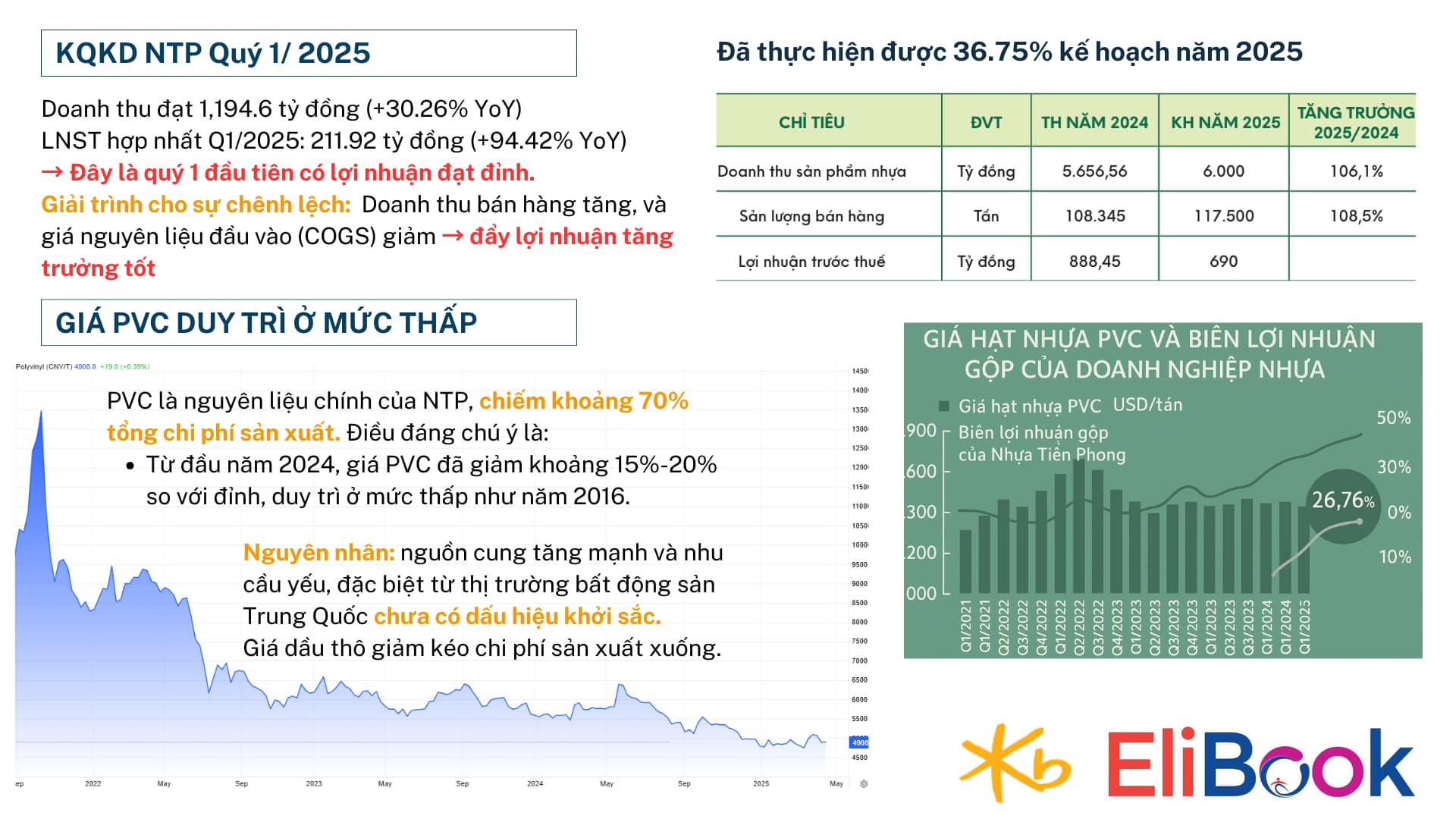 - Giai đoạn T5–T9/2024: NTP đã có chiến lược xả hàng tồn kho cũ trong Q1–Q2 để hạ giá bán, sau đó gom lại PVC với giá rẻ vào Q3, tạo đà cho cổ phiếu tăng tới 92%.