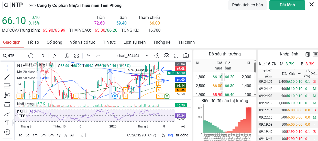 - Ví dụ, trong giai đoạn từ tháng 5 đến tháng 9/2024, khi NTP gom hàng thành công, cổ phiếu đã tăng tới 92%.