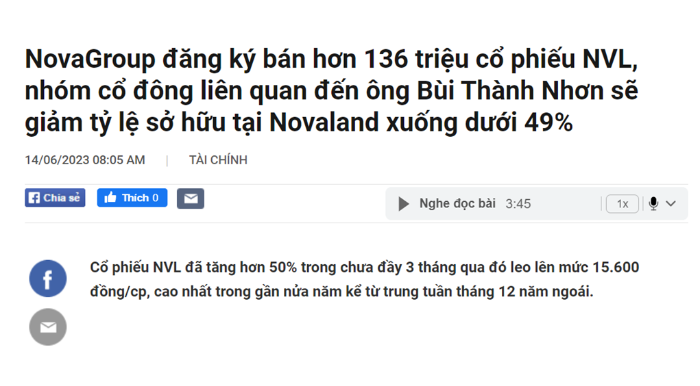 => Tin tích cực đẩy giá cp trong tuần qua, giúp NVL khai thông đại dự án Aqual City thu tiền về2.2. CTCP Novagroup đã đăng ký bán bớt hơn 136 triệu cổ phiếu NVL