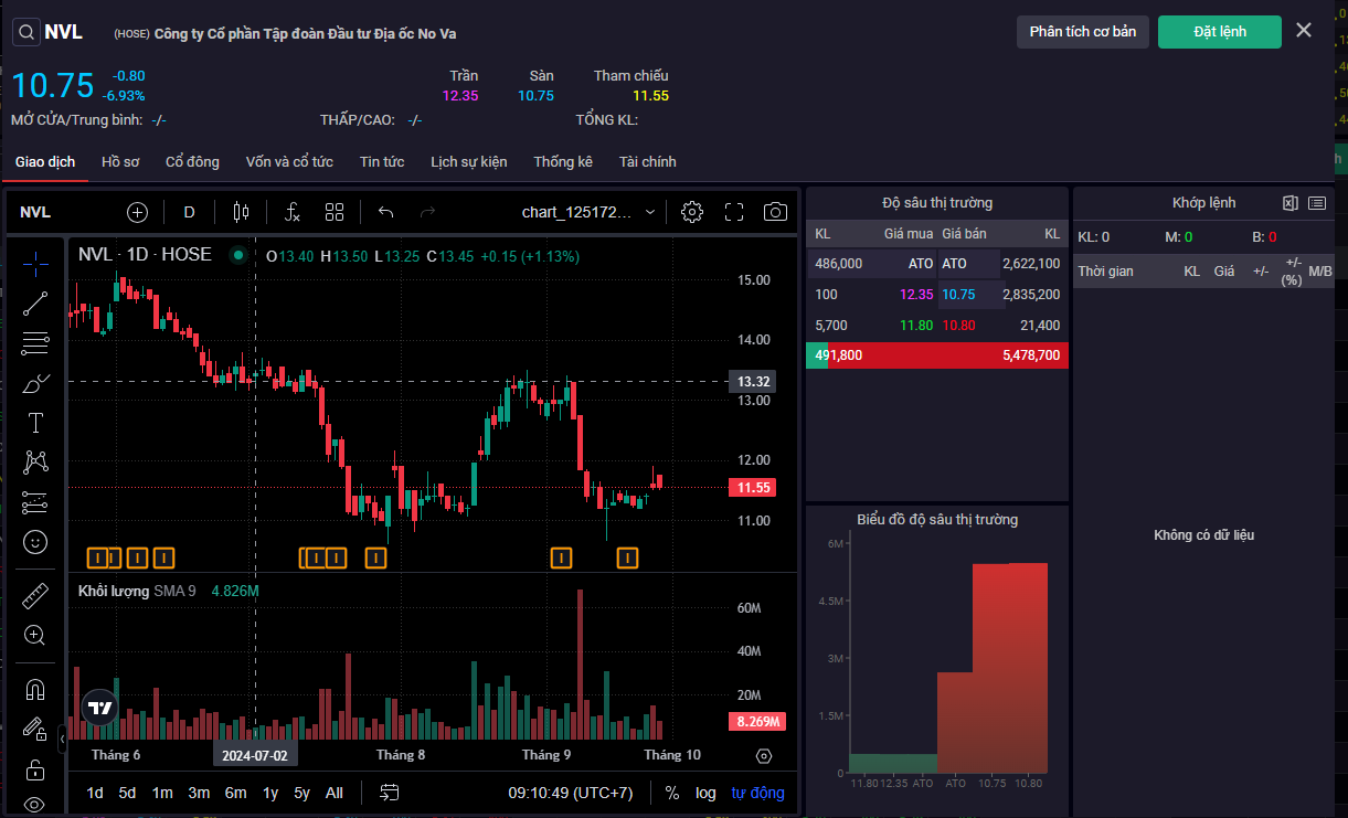 NVL sau phiên ngày 17/09/2024 thì ghi nhận mức giá sát đáy lịch sử đã từng ghi nhận hồi đầu năm 2023, theo đó NVL có lúc mất 550 đồng xuống 10.650 đồng/cp, trước khi đóng cửa buổi sáng ở mức 10.850 đồng/cp.