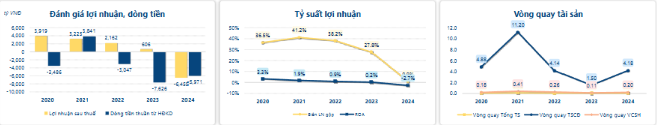 Doanh thu có sự tăng trưởng nhưng không đủ bù đắp các chi phí khiến lợi nhuận âm, dẫn đến ROE bằng -13.9% là dấu hiệu của tình hình kinh doanh đang xấu đi.