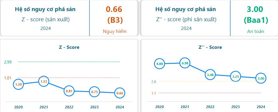 - Z-Score < 1.81 → Nguy cơ phá sản cao, tài chính đáng lo ngại.