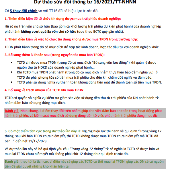 Như vậy nếu TT16 được sửa đổi sẽ cho phép bank mua lại TPDN → giải quyết được bài toán nợ đến hạn cũng như phát hành mới của DN bối cảnh khó khăn này.