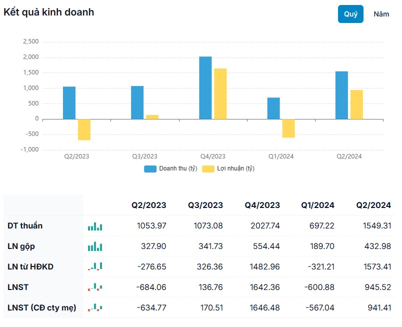 Quý II năm nay, Novaland ghi nhận doanh thu thuần đạt 1.549 tỷ đồng, tăng 47% so với cùng kỳ năm trước. Novaland báo lãi ròng đạt 941 tỷ đồng, tăng mạnh so với khoản lỗ 634 tỷ đồng của năm trước. Đây cũng là mức lợi nhuận cao nhất trong 9 quý vừa qua.