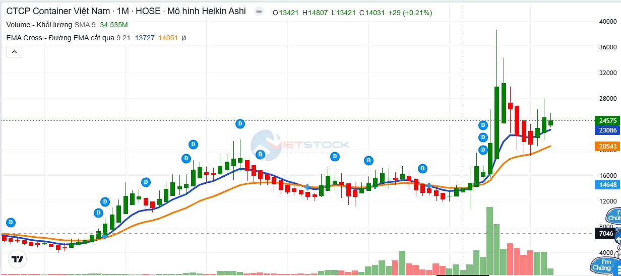 Khung D1 đang cho TĂNG với chỉ báo EMA 9 X EM21 giao cắt LÊN