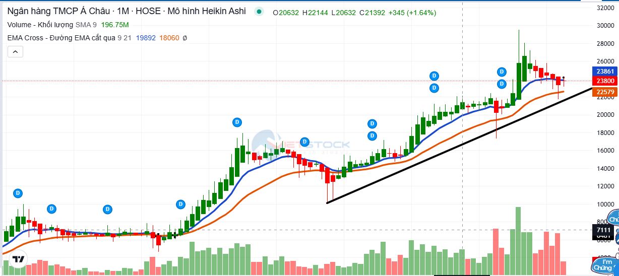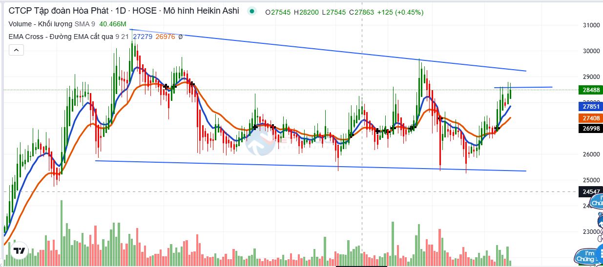 Gía test lại và đang được hỗ trợ bởi EMA21 tại 30.114