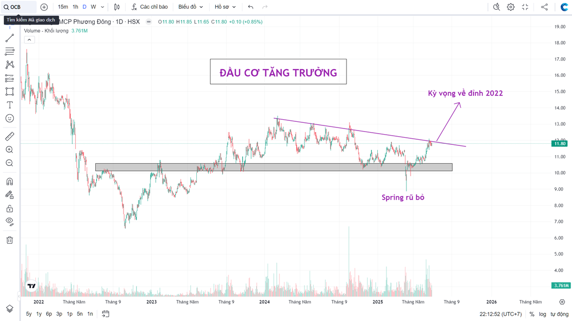 OCB chưa tạo nhiều hiệu ứng truyền thông như MBB hay VIB, nhưng chính sự “trầm lắng” lại là vùng định giá hấp dẫn cho những nhà đầu tư tìm kiếm giá trị.