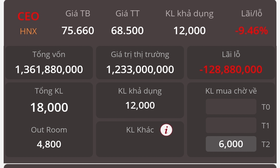 Bác bán cắt lỗ rồi chuyển qua CEO hả bác ? E thấy nếu chỉ cần CEO lên khoảng chừng 85 là bác về bờ. Vì CEO lợi thế đang bán hàng nhanh ra sản phẩm có lợi nhuận sớm hơn, vị thế sàn HNX chỉ cần trần 2 cây bằng HOSE trần 3 cây, nên pp đánh nhanh thì CEO lợi. Còn tầm nhìn 5 năm thì DIG có lợi.