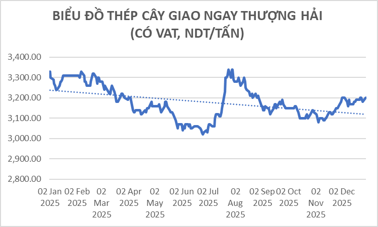 Giá thép Trung Quốc biến động giảm phạm vi hẹp vào năm 2025 do các thách thức dư cung và rào cản thương mại gia tăng, trong khi nhu cầu nội địa yếu từ sự suy thoái của ngành bất động sản trong nước. Nhu cầu nội địa thấp thúc đẩy nước này tiếp tục đẩy mạnh xuất khẩu, bất chấp các rào cản thương mại toàn cầu. Lợi nhuận sản xuất cũng liên tục giảm xuống mức thua lỗ do Chính phủ siết chặt sản lượng, giá thép giảm trong khi chi phí đầu vào gia tăng mạnh. Năm 2025 cũng chứng kiến chuỗi leo thang thuế quan dữ dội nhất trong quan hệ thương mại Mỹ - Trung. Từ khi Tổng thống Donald Trump trở lại Nhà Trắng, Washington liên tục tung ra các mức thuế mới kéo theo loạt biện pháp đáp trả mạnh mẽ từ Bắc Kinh.