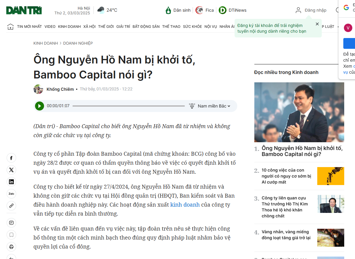 Việc cựu Chủ tịch Tập đoàn Bamboo Capital (BCG) Nguyễn Hồ Nam, Bà Huỳnh Thị Kim Tuyến: Phó Chủ tịch HĐQT Công ty Cổ phần Tập đoàn Xây dựng Tracodi (TCD), một công ty con của BCG bị khởi tố và một số lãnh đạo khác bị khởi tố đã gây ra những tác động tiêu cực đến thị trường chứng khoán, đặc biệt là đối với các công ty trong hệ sinh thái của BCG. Các đơn vị liên quan cũng chịu ảnh hưởng đáng kể từ sự kiện này.
