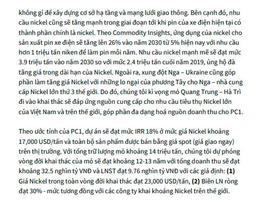 mua PC1 vì cái mỏ Nikel là chính, chứ dòng điện đầu tư lớn khó có đột biến