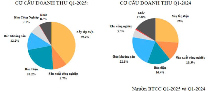 Điểm nhấn Q1-2025: Tỷ lệ DT/KH Q1-2025 chỉ đạt 13.88%, giảm 27% svck.Tuy nhiên lợi nhuận gộp lại tăng trưởng 5% svck, nguyên nhân nhờ hưởng lợi chi phí khấu hao thấp hơn sau khi các dự án điện gió được hoàn thành quyết toán.