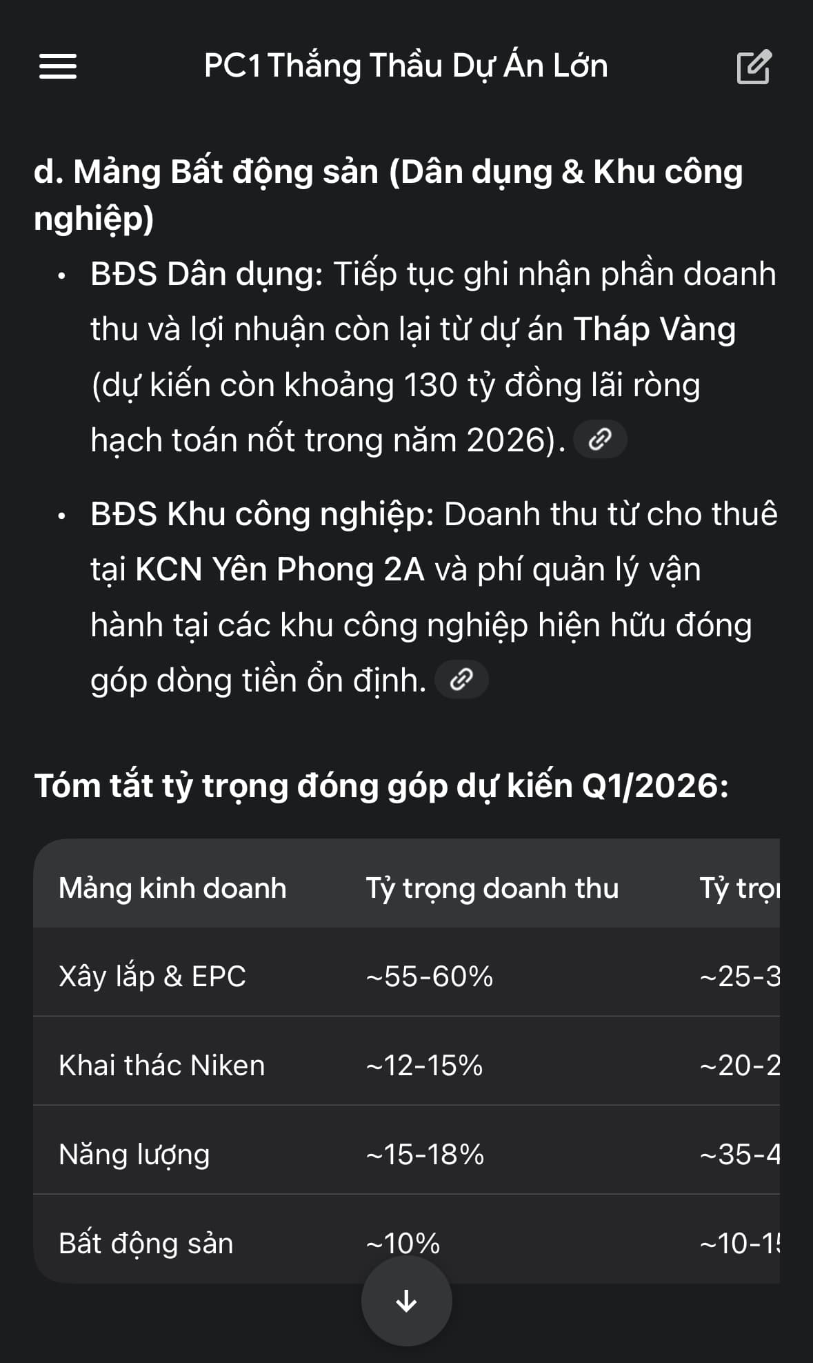 Nhận định: Q1/2026 của PC1 sẽ phản ánh sự dịch chuyển rõ nét từ một doanh nghiệp thuần xây lắp sang một tập đoàn đa ngành với cơ cấu lợi nhuận bền vững hơn từ Niken và Năng lượng tái tạo