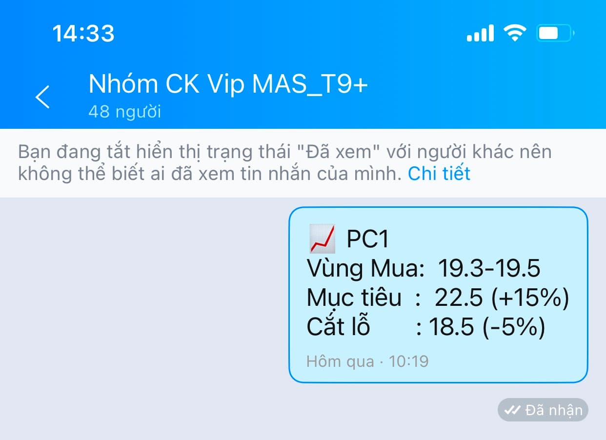 Phiên sáng hôm qua lúc 10h19’, khi PC1 đang giao dịch quanh vùng giá 19.4 là lúc thích hợp giải ngân ở nhịp mua tiếp theo với mục tiêu ngắn hạn theo kế hoạch dự kiến đạt 22.5 tương ứng mức sinh lãi kỳ vọng 15%