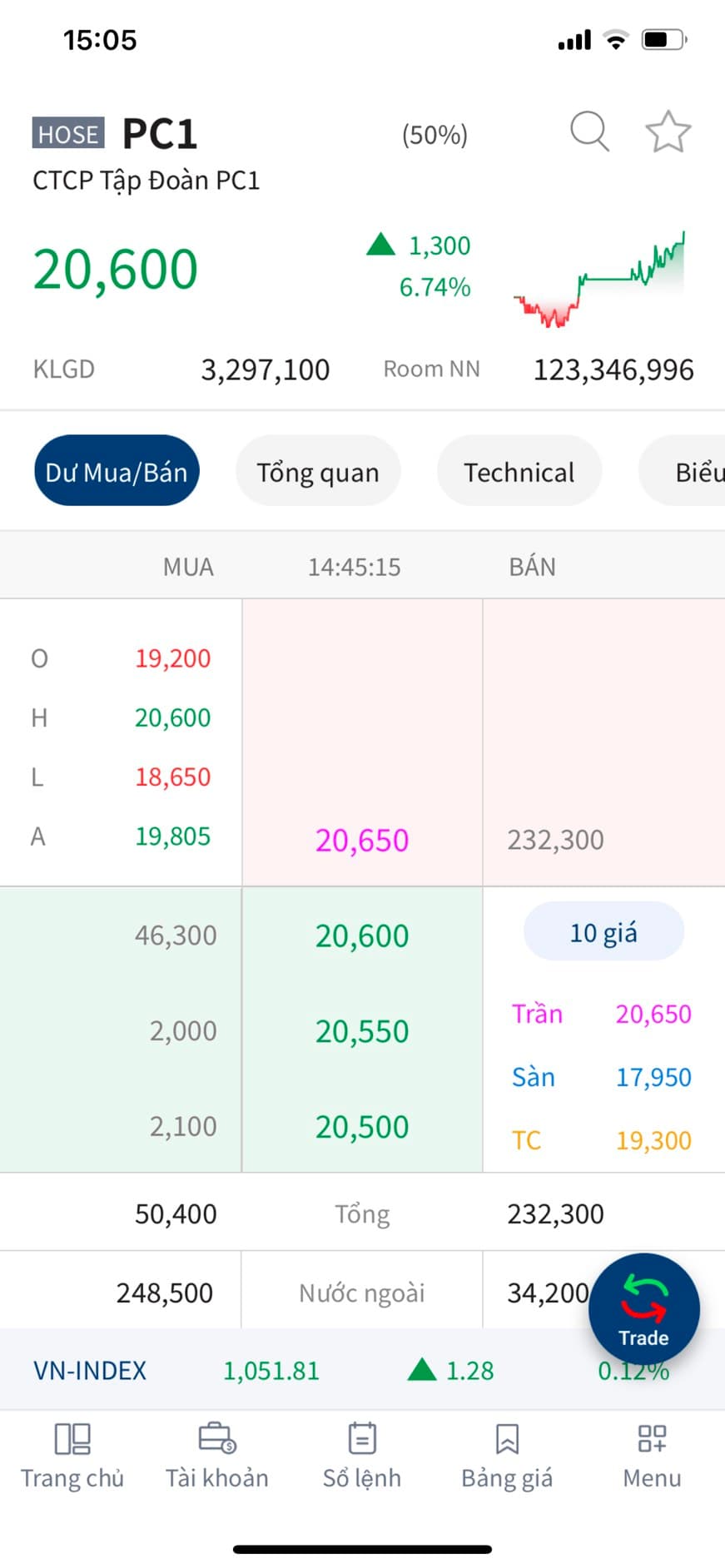 Vào kết phiên PC1 chạm sát mức giá trần, vị thế mua sớm 1 phiên sẽ khá chủ động khi có sẵn hàng bán vào chiều thứ 2 nếu PC1 chạm luôn mục tiêu trong đầu tuần sau.