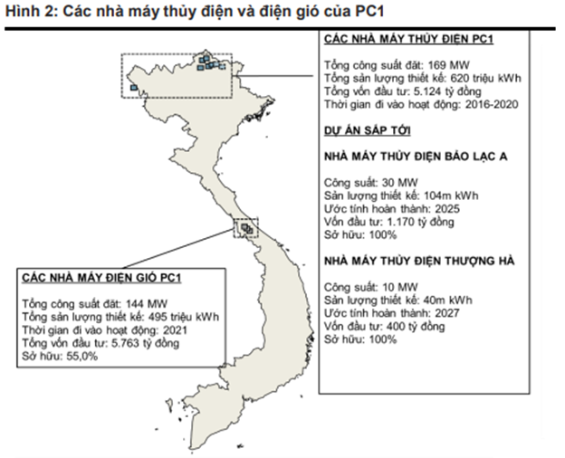 Ba nhà máy điện gió đang vận hành (tổng công suất 149 MW) dự kiến sẽ mang lại dòng doanh thu ổn định cho PC1 trong giai đoạn 2023-25