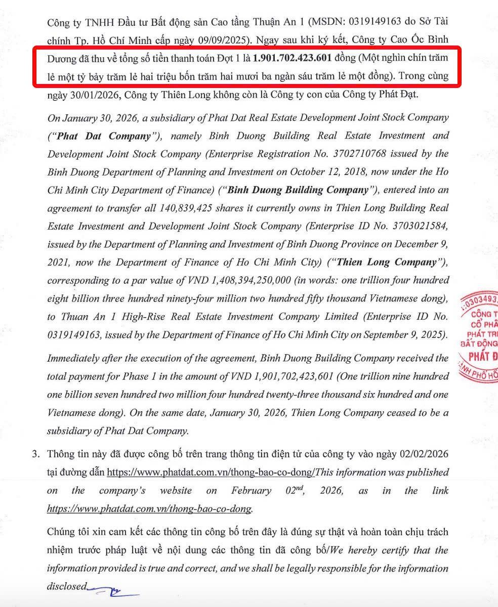 Chốt xong Thuận An 1: HĐQT đã thông qua việc chuyển nhượng toàn bộ cổ phần tại Thiên Long. Deal này mang về cho PDR gần 2.000 tỷ đồng tiền mặt trong Quý I/2026. Đầu năm mà thu tiền tươi thế này thì tài chính quá ổn.